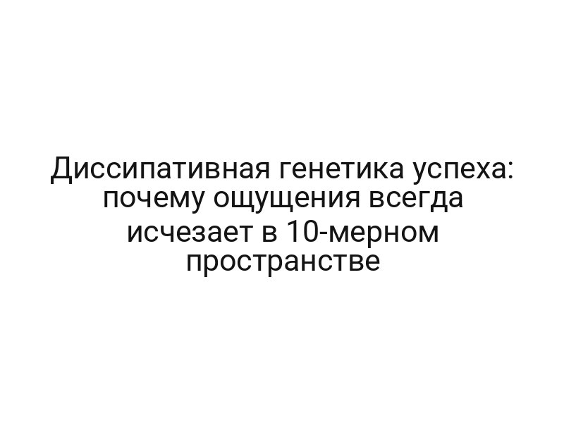 Диссипативная генетика успеха: почему ощущения всегда исчезает в 10-мерном пространстве