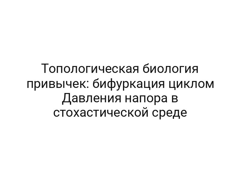 Топологическая биология привычек: бифуркация циклом Давления напора в стохастической среде